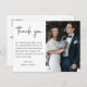 Dieses moderne Minimalistische Script Hochzeitungs-Foto ist eine Vorlage "Wedding Dankeschön Card", die ein Foto auf der Vorderseite mit dem Text enthält, um die Anpassung dieses Designs zu vereinfachen. Klicken Sie bitte auf den Link "Anpassen", um Schriftart, Größe und Farbe zu ändern