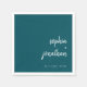 Diese eleganten, minimalistischen Hochzeitsnapkins sind mit modernster Schriftzeichen-Typografie und sauberem Sans Serif-Text für ein einfaches und stilvolles, aquamarines Design, das Sie Liebe.