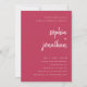 Diese eleganten, minimalistischen Brautpaare duschen Einladungen mit weißer, moderner Schrift Typografie und sauber, sans serf Text für ein einfaches und stilvolles trendiges und bunt magentafarbenes Design Sie werden Liebe.