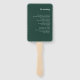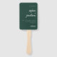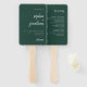 Diese eleganten, minimalistischen Hochzeitsfans sind mit weißer, moderner Schrift-Typografie und sauberem Sans Serif-Text für ein einfaches und stilvolles smaragdgrünes Design, das Sie Liebe. Die Rückseite des Ventilators enthält Ihre Zeremonie oder andere Informationen Ihrer Wahl.
