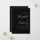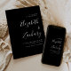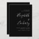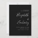 Diese einfache moderne Hochzeit speichert die Dattelkarte mit weißem Text in stilvoller Handschrift Kalligraphie und sans serif Schriftart, ausgerichtet mit dem rechten Rand auf einem schwarzen Hintergrund. Die Rückseite der Karte ist schwarz.