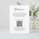Moderne Visitenkarte mit zeitgenössischem typografischem Design mit "danke" in einer eleganten Schrift-Typografie mit drei Headern und Textboxen und einem optionalen QR-Code in einem einfachen und minimalen Layout. Das Farbdesign ist schwarz und weiß und kann im Designbearbeitungstool geändert werden. Der QR-Code kann im Entwurfstool entfernt werden.