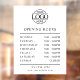 Präsentieren Sie Ihre Geschäftszeiten mit einem glänzenden und beruflichen Schwarz-Weiß-Fensterheber, zugeschnitten auf moderne Unternehmensumgebungen und kleine Unternehmen. Mit einem eleganten, minimalistischen Design lässt sich dieses Fensterheber vollständig mit Ihrem Firmenlogo und den Betriebsstunden anpassen. Es ist die perfekte Lösung, um das Aussehen Ihres Schaufensters zu verbessern und gleichzeitig eine klare und effektive Kommunikation mit den Kunden zu gewährleisten. Ideal für Unternehmen, die ein raffiniertes Markendesign suchen.
