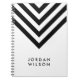 Modernes, minimalistisches Notizbuch mit einem Zickzack schwarzen Muster, das Sie mit Ihrem Namen personalisieren können. Ideal für Schule oder Büro. Personalisieren Sie es, indem Sie den Platzhalter-Text ersetzen. Für weitere Optionen, wie zum Beispiel den Schriftart und seine Größe ändern, klicken Sie auf die Schaltfläche "Anpassen". *Bitte beachten Sie, dass das Zazzle-Wasserzeichen, das in der Zoomvorschau angezeigt wird, NICHT auf dem gedruckten Endprodukt erscheint. © Rosewood and Citrus
