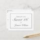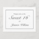 Sweet 16 Geburtstagsparty Postcard Einladung. Stilvolles modernes minimalistisches Schwarz-Weiß-Design. In unserem Shop sind weitere Artikel in diesem Stil erhältlich. Sie können das Design weiter bearbeiten, die Hintergrundfarbe ändern, Schriftart hinzufügen und durch Klicken auf den Link "Weiter" den Text anpassen.