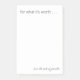 Ein modernes minimalistisches Design für Ihre personalisierten Post-it Notes enthält das Zitat für das, was es wert ist und Ihre persönliche Schlagzeile in einer modernen schwarzen Typografie. Beide sind leicht personalisiert.