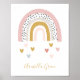 Ein süßes Poster für das Kinderzimmer eines Babys, mit einem modernen, gedämpften Regenbogen, das Herz mit dem Namen eines Babys in der Hand gezeichnete Schrift schüttelt. Copyright Personalisierte Wohngestaltung & Geschenke, alle Rechte vorbehalten.