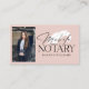 Moderne, elegante Mobile Notary Foto Visitenkarte. Das Design beinhaltet Single Foto, Typografie Drehbuch ''mobile notary'' und einen Namen auf der Vorderseite. Personalisieren Sie weiter mit Ihren Kontaktdaten, Social Media und qr Code auf der Rückseite.