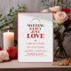 Ein kühnes, aber minimales Save the Date mit einem modernen Monogramm, schlichten roten Rahmen und der herzlichen Botschaft: "Nichts Extravagant, Nur Liebe." Ideal für Paare, die gepflegtes Design mit persönlicher Touch schätzen.