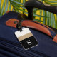 Dieses moderne und schicke Gepäck mit klassischen schwarzen, weißen und goldenen Streifen und einer individuell anpassbaren Monogramm. Fügen Sie Ihren Namen und Ihre Adresse auf der Rückseite für eine wirklich personalisierte Gepäckmarke hinzu.