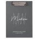 Bleibe und beruflich mit diesem Monogram Logo Gray Modern Consultant Clipboard. Mit seinem eleganten und modernen Design ermöglicht diese Zwischenablage eine individuelle Gestaltung mit eigenen Monogrammen, Namen und Kontaktdaten. Sie eignet sich ideal für Berater, Profis und Unternehmen. Dieses stilvolle Clipboard eignet sich ideal für Tagungen, Konferenzen und den täglichen Gebrauch und kombiniert praktische und gepflegte Details. Stellen Sie sich Ihre Marke noch heute individuell zusammen, um die Präsenz Ihrer Marke zu steigern!