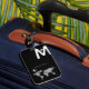 Das Bild der Weltkarte und ein kleines Flugzeug + Ihr eigener Initial und Name.. ein stylisches schwarzes Etikett, um Ihr Gepäck zu identifizieren.