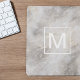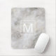 Dieses Mauspad zeichnet sich durch ein modernes, graues Marmordesign aus, mit einem weißen Monogramm in einem quadratischen Rahmen.
