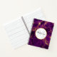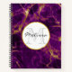 Personalisiertes Notebook mit einem schönen abstrakten Muster und Marmordesign. Reiche lila Farbkombinationen, kombiniert mit Imitat-Gold schwirbelnden Farbbändern, die das gesamte Design durchziehen. Ein Kreis mit einem Imitat mit goldgeflochtenem Rand, oben mit dem personalisierten Text.