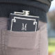Schwarzer, moderner Hintergrund mit Imitaten, Silberrahmen. Passen Sie das weiße Monogramm, das zuerst über dem grauen Caduceus Symbol liegt, an. "Apotheker" Text unterhalb des Caduceus Symbols.