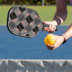Modernes Monogramm Kariert-Grau-Schwarz-Rosa Pickleball Schläger