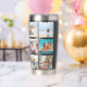 Erstellen Sie Ihren eigenen personalisierten Foto Collage Thermal Tumbler mit 12 Ihrer Lieblingsfotos in einfachem Grid-Design zusammen mit dem benutzerdefinierten Monogramm-Namen in der modernen Typografie.