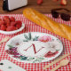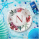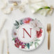 Moderne klassische Papiertafel mit roter Monogramm, umgeben von rosa Pfannkuchen und anderen schönen Blume. Ideal für Hochzeiten, Jubiläum oder andere besondere Anlässe. Fügen Sie Ihr eigenes Monogramm zu personalisieren.