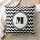 Modernes Monogramm Schwarz-Weiß-Zickzack Muster Kissen