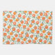 Ein süßer Pfirsich mit grünen Blätter Muster Küchentücher Design Set auf einem weißen Hintergrund.