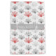 Hübsches und modernes Blumenmuster mit 5 Blatt Pflanze / Blume Illustrationen in rot und grau auf weißem Hintergrund. Grau-Mitte-Band kann nach dem Motto "Happy Geburtday" individuell angepasst oder verlassen werden