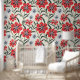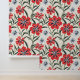 Das moderne Rot-Weiß-Blumenmuster-Tapete mit hellen, fett-rot-weißen Blume und grünen Blätter auf cremefarbenem Hintergrund. Ideal für Zimmer, Zuhause, Büro und Party. Erstellt von Evco Studio www.zazzle.com/store/evcostudio