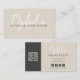 Moderne minimale natürliche Skripte boho QRcode beige und schwarz Visitenkarte Design.