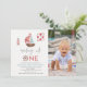 Modern Nautical Sailing Einladung Dieses Foto, das in eine Einladung zum ersten Geburtstag segelt, verfügt über ein Segelboot, einen Leuchtturm, Helm und Rettungsschwimmer sowie das Foto Ihres kleinen Jungen. Ideal für ein Wassersport-Thema zum ersten Geburtstag.