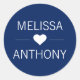 Modernes Navy Blue Heart White Wedgram Runder Aufkleber