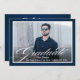 Moderne Navy Blue Silver Script Foto Graduation Party Einladung