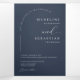 Modernes Navy-Minimal-Arch-Foto QR Code Hochzeit Dreifach Gefaltete Einladung