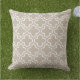 Stilvolles Kissen mit modernem marokkanischem Vierblattmuster in Weiß. Passen Sie den neutralen beige/taupe Hintergrund an, um sich mit Ihrer Außendekoration abzustimmen.