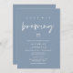 Mit unserem modernen, staubblauen Design (Liebe ist brauend) Brautparty-Einladungskarte verkünden Sie Ihre Freude, die es Ihnen immer noch im Stil gibt. Mit seinem ausgeklügelten, aber spielerischen Design, eingebettet in ein kleines Liebe-Herz und Bierglas, das die grafische Ikone klopft, wird diese Einladung bestimmt den Ton für ein unvergessliches Ereignis Set. Die Einladungskarte bietet modernes, minimalistisches Drehbuchdesign und verleiht Ihrem Fest eine Touch zeitloser Eleganz. Designed by TeeshaDerrick