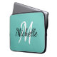 Moderne Laptop-Gehäuse mit hellblauem Hintergrund und weißem, benutzerdefiniertem Monogramm, erster und erster Name.