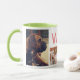 Moderne niedliche Tasse mit 4 Fotos aus der Familie, einem niedlichen Cartoon-Hasen mit Blume-Krone und Ihrem Monogramm-Brief in Rosa. Diese Tasse eignet sich hervorragend für ein niedliches Frühjahrsupdate Ihres Trinkbehälters.