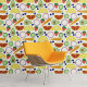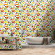 Geben Sie Ihren Wänden eine frische Touch mit dieser gemusterten Schale und Tapete aus Obst und Gemüse. Dieses lustige, moderne Muster illustriert ein buntes Obst- und Gemüseangebot mit cremefarbenem Hintergrund. Es gibt Orangen- und Zitronenkeile, Karotten, Avocados, Heidelbeeren, Gurken und Erdbeeren.