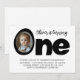 Feiern Sie Ihren kleinen Meilenstein mit diesem modernen One Black and White Birthday Foto Einladung! Dieses elegante Design mit feinem Typografie, einem puristischen, minimalistischen Layout und Platz, um Ihr Lieblingslied zu präsentieren, eignet sich perfekt für eine stilvolle und zeitlose Geburtstagsfeier. Klassisch, modern und mühelos cool!