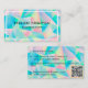 .: Die Einführung der modernen eleganten Opal Visitenkarten. Geometrische Formen gibt es in lebhaften Teals, Pinks, Gelb und vielem mehr! Das simulierte holografische Design hat lustige Dimensionalität! Visitenkarte, die alle lustigen Vibes abgibt. Hier treffen Raffinesse und Kunst aufeinander. Diese Karte ist nicht nur ein berufliches Accessoire; sie ist eine exquisite Aussage, die Charisma flüstert. Stellen Sie sich die warmen rosa Farbtöne vor, die mit dem opulenten Reiz eines aquamarinen, an die verschlungenen Tiefen eines friedlichen Geodes erinnern - es ist, als würde man den Schmuck der Natur in der Hand halten. Bei der Präsentation dieser Visitenkarte ruft sie Intrigen hervor, indem sie Neugier und Gespräche einlädt. Die Textur und das Finish verleihen dem Ganzen ein taktiles Vergnügen, ähnlich einem glatten, polierten Stein. Ideal für diejenigen, die Eleganz und eine Touch des Exotischen in ihrer beruflichen Persönlichkeit schätzen, verwandelt diese Karte jede Einführung in ein unvergessliches Erlebnis. Jedes Detail arbeitet in Harmonie, um Aufmerksamkeit zu erlangen und einen bleibenden Eindruck verlassen, was es zu einem unverzichtbaren Element für Ihr Business Arsenal macht. Hinweise zu diesem Design *Der holografische Effekt ist nicht real, sondern simuliert. Es wird empfohlen, helleres Papier - Halbschloss für bessere Druckergebnisse zu wählen. **Die Wahl zwischen schwarzem und mattem Papier ist für dieses spezielle Design nicht geeignet