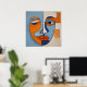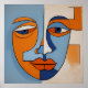 Ein dynamisches, abstraktes Gesichtsdesign in Blau und Orange, das coole Ruhe mit feuriger Wärme verbindet und so einen faszinierenden visuellen Effekt erzielt.