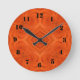 Modernes orangefarbenes Holzmuster Runde Wanduhr