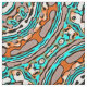 Schönes zeitgenössisches, aquamarines türkisfarbenes, beige-braunes und orangefarbenes Mosaikmuster aus Amerikanische Ureinwohner. Verziertes, whimsical, funky, Hipster-Design für die künstlerische Modediva oder künstlerische Modediva, angesagte Trendsetter oder moderne abstrakte grafische grafische geometrische Motiv-Liebhaber.