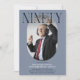 Moderne stilvolle 90. Geburtstagseinladung. Das Design beinhaltet ein ovales Foto des Geburtstagsmädchens/Jungen, die elegante Schrift 'NINETY' mit dem Namen der Personen in der Signatur-Schrift über dem oberen Teil und eine einfache Geburtstagsgeschenk-Vorlage, die sich leicht mit Ihren eigenen Details anpassen lässt. Die Farben können auch an das eigene Party angepasst werden.