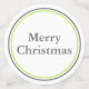Festliche Weihnachtskonfetti mit einer modernen Graupalette in Kalkgrün und Weiß. Der kleinste Konfetti-Kreis hat eine graue Schneeflocke, die nächste hat ein Zickzack Weihnachtsmuster und der letzte hat Text, der Frohe Weihnachten liest. Es stehen passende Einladungen und Urlaubsparty-Produkte zur Verfügung.
