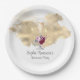 Hübsche Teller aus dem Party mit einem Champagnerglas in Aquarellfarbe und rosa bordeauxfarbene Blumenmuster auf einem Waschbecken aus Glitzer. Stilvoll und hübsch. Feiern Sie Ihren Ruhestand mit einem Champagner-Toast-Thema.