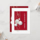 Die moderne Weihnachtsweih-, Rot- und Goldweihnachtszeit-Party Einladung mit eleganten Goldbändern und weißen Bändern und Bausteinen lädt zum Verweilen ein. Diese Einladung eignet sich für Firmenfeiern und Familienfeiern.