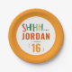"Shh!" Die farbenfrohen Birthday Paper Teller zeichnen sich durch ein spielerisches Design mit einem lebendigen, im Aquarellstil bemalten Drehbuch auf weißem Hintergrund aus, das durch einen fett orangefarbenen Rahmen gerahmt ist. Jeder Buchstabe ist einzigartig gefärbt, mit lebendigen Spritzern, die eine lustige Touch hinzufügen. Diese Teller eignen sich perfekt für Party, die für Teenager, Erwachsene oder Kinder geeignet sind. Sie können sie sogar mit dem Namen und Alter des Geburtstags personalisieren, um den Teller besonders zu machen! Sie bringen eine künstlerische, maßgeschneiderte Touch zu jeder Überraschungsveranstaltung.