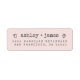 Das schicke, moderne und schlichte Ehering-Adressetikett mit Ihren Namen in der modernen Typografie aus Schwarzschwarz auf pastellrosa Hintergrund mit einer stilvollen Touch handgezeichneter Herzen. Fügen Sie einfach Ihren Namen und Ihre Adresse hinzu. Exklusiv für Sie entworfen von Happy Dolphin Studio.