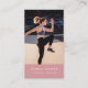 Eine moderne, rosa Personal Trainer Fitness personalisierte Visitenkarte für jeden, der ein Foto auf der Vorderseite seiner Visitenkarte platzieren möchte. Eine einfache und berufliche Art, Ihr Unternehmen oder Ihre Dienstleistung einzuführen. Personalisieren Sie die Vorderseite der Visitenkarte mit Ihrem Foto und fügen Sie QR-Code und Details auf der Rückseite hinzu. Erstellen Sie Ihre eigene elegante Visitenkarte. Social Media Icons, die in der Gestaltung dieser Visitenkarte für Sie enthalten sind.