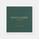 Erleben Sie Ihren Hochzeitsempfang mit unserem modernen Personalisierte mit Name Wedding Reception Napkins, das eine elegante, raffinierte Ästhetik mit einer Touch von Klasse verkörpert. Diese Servietten sind sorgfältig mit den Namen der Braut und des Bräutigams personalisiert und sorgen für eine personalisierte Touch, die den Charme Ihres besonderen Tages noch verstärkt. Diese Servietten mit atemberaubendem smaragdgrünen und goldfarbenen minimalistischem Design ergänzen die moderne, minimalistische Hochzeitsdekoration mühelos und sorgen für einen Pop an Farbe und Eleganz. Diese Servietten sind ideal für Verlobungsfeiern, Probe-Dinner, Jubiläumsfeiern und Brautpartys. Sie sind vielseitig und für verschiedene Anlässe geeignet. Von den Cocktailstunden bis zum Abendessen, unsere Hochzeitsnapkins sind ideal, um jedem Anlass eine Touch Eleganz zu verleihen. Ob Cocktail-Servietten oder Dinner-Servietten, sie werden Ihre Gäste beeindrucken und das Ambiente Ihrer Feier verbessern, indem sie wertvolle Erinnerungen schaffen, die ein Leben lang halten.