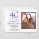 Einladung zum personalisierten Geburtstag. Modernes Design mit lila Akzenten. Meilenstein Geburtstag - Sie können das Alter auf alles ändern. Die Rückseite der Einladung hat kleine lila Plätze für ein modernes Aussehen. Für die Anpassung klicken Sie bitte auf den Button "Anpassen" und verwenden Sie unser Design-Tool, um diese Einladung zu personalisieren. Die Einladung ist auf unserer Webseite in rot verfügbar.
